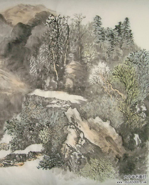 孙捷国画 林泉