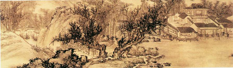 《江城秋访图》      清 吴宏 《负郭村居图》