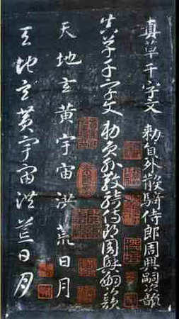 他晚年就曾以当时的识字课《千文字》为内容,用真,草两体写了一千多本,从中挑选最满意的八百本,分送给浙东的各个寺院。直到如今,智永的《千文字》墨迹和刻本还被视为学习书法的范本。