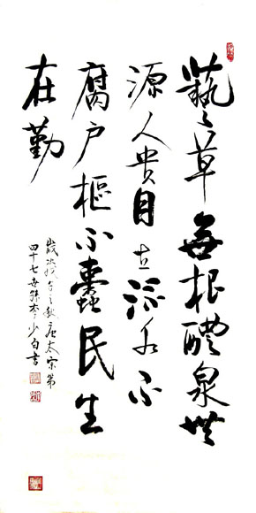 李少白,北京人,原名李伦,唐太宗第四十七世孙, 七十年代生于书香世家。精翰墨、工诗文、喜金石。他自幼酷爱书法:揩书临于颜、赵,行书取法于王羲之、黄庭坚和米芾; 草书取法于张旭、孙过庭及贺知章。作品多次参加国内外各类书画展,获得“著名书法家”等荣誉称号。其作品被多位国家领导人收藏。 现任世界华人书画...(详细介绍)