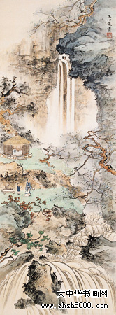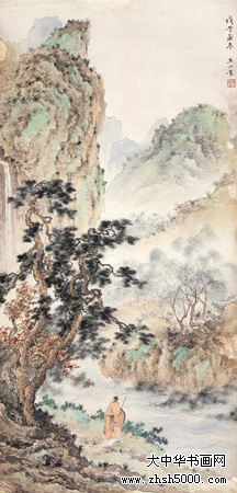 王心竟(1909-1954),又名心镜,字锡照,山东省烟台市人,居于北京。曾为中国美术家协会会员,自幼习画,少年时曾入金城门下,十几岁入“湖社”学画,师承赵梦朱、钟质夫,专攻山水画。1930年就读于北京辅仁大学美术系,后又入吴镜汀门下,师唐寅诸法,追两宋画风。“湖社”画会是北京最早的美术界学术组织,1926年冬成立,为纪念其前身——“中国画学研究会”的早期创办人金北楼先生,以金北楼旧号“藕湖”取名“湖社画会”,其弟子均以“湖”字为号。著名画家叶恭绰、陈半丁、王雪涛等均为湖社会员,张学良、齐白石、梅兰芳等均为湖社好友。“湖社”主要活动于北京、天津等地,后来又成立了“辽宁湖社书画研究会”,“湖社”画家中的赵梦朱、钟质夫、晏少翔、季观之、王心竟等人来到辽宁沈阳,在东北美专(1958年后改为鲁迅美术学院)任教。王心竟即于 1953年到东北美专任讲师,为东北地区的中国画教学和人才培养作出了极大的贡献,其山水画风整整影响了一代人。 代表作品有《山村晨歌》、《风雨情》等。